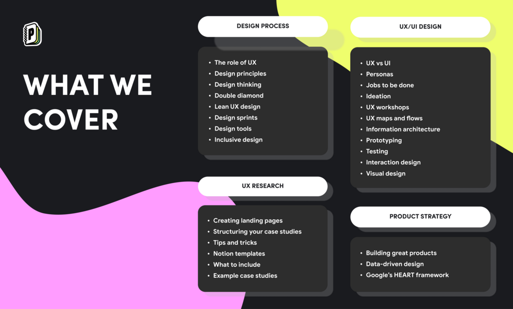 These have been specially curated by Lead Designers at Google and Farfetch to help you achieve your goal of learning UX Design.